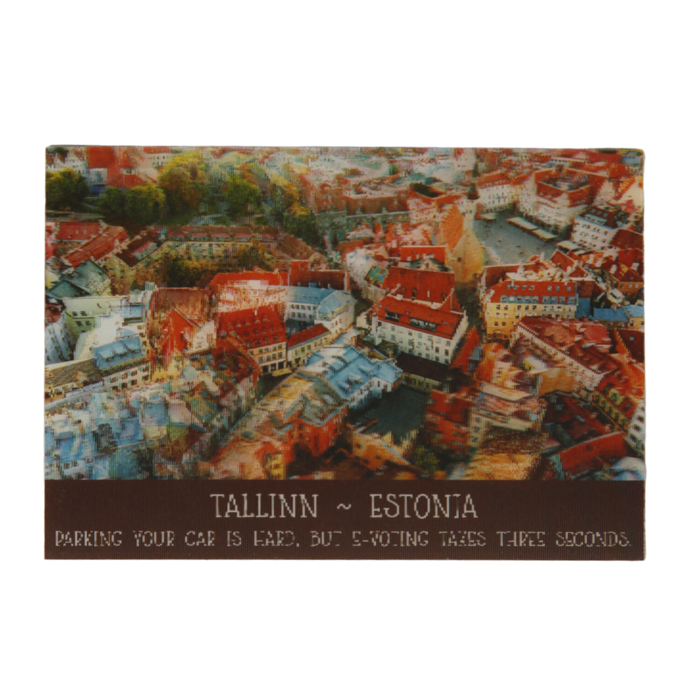 Kaunis Tallinna vanalinnaga 3D magnet, mis sobib kaunistama suurepäraselt igaühe külmikut. Magnetil on kiri “Tallinn. Estonia. Parking your car is hard, but E-voting takes three seconds”.